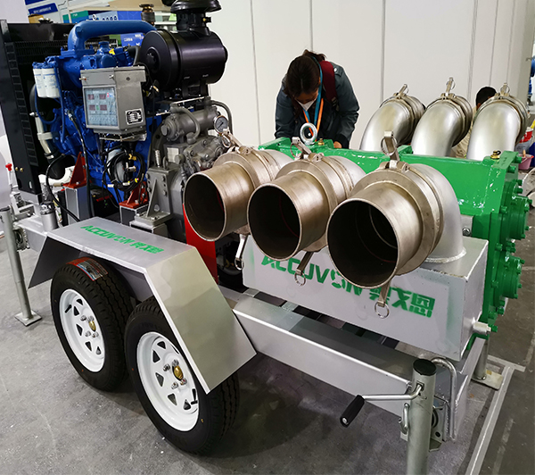 一.采用奧戈恩高品質的凸輪轉子泵 1.高落差吸水,遠距離吸水:垂直自吸達8-9.5m,水平自吸達100m以上 2.無堵塞:塑料袋,編織袋 ,毛發等雜物不會影響泵的使用.最大可通過10cm的異物 3.上水速度快,可短時空轉:上水時間5-15S 4.流量調節方便:流量與轉速成正比,改變轉速即可改變流量 5.流量0-3200立方米/小時可選,排水距離可達5km 6.在線維修:無需拆卸管路即可維修 7.節能省電,效率高:泵運轉效率高達65%-85%,達到同樣流量和揚程比其他泵節能30%左右。 8.無需底閥:奧戈恩凸輪泵進出口管路可不用安裝任何底閥 9.流向可逆:改變轉向即可改變泵流向,可適應排水和供貨的要求 | 1.市政防洪抗旱排澇 在城市遭遇洪水,特大暴雨襲擊的時候,將城市暴雨積水排到幾公里外的渠道中或下水道中的作用 2.消防給水,消防供水 在地震、海嘯、水源污染、城市供水管網損壞時,用于城市應急供水,或具有將幾公里外的水源快速的輸送到火場滅火 3. 煤礦,礦山、地下隧道等積水快速排出排水救援 4.石化,油庫應急收油,倒罐 污水井事故清空,污水泵站事故抽空,水廠的污水池、污泥池清空 5.機場應急排澇搶險 6.農業排灌 7.軍用野外給水系統,海島淡水收集系統,軍艦供油 |